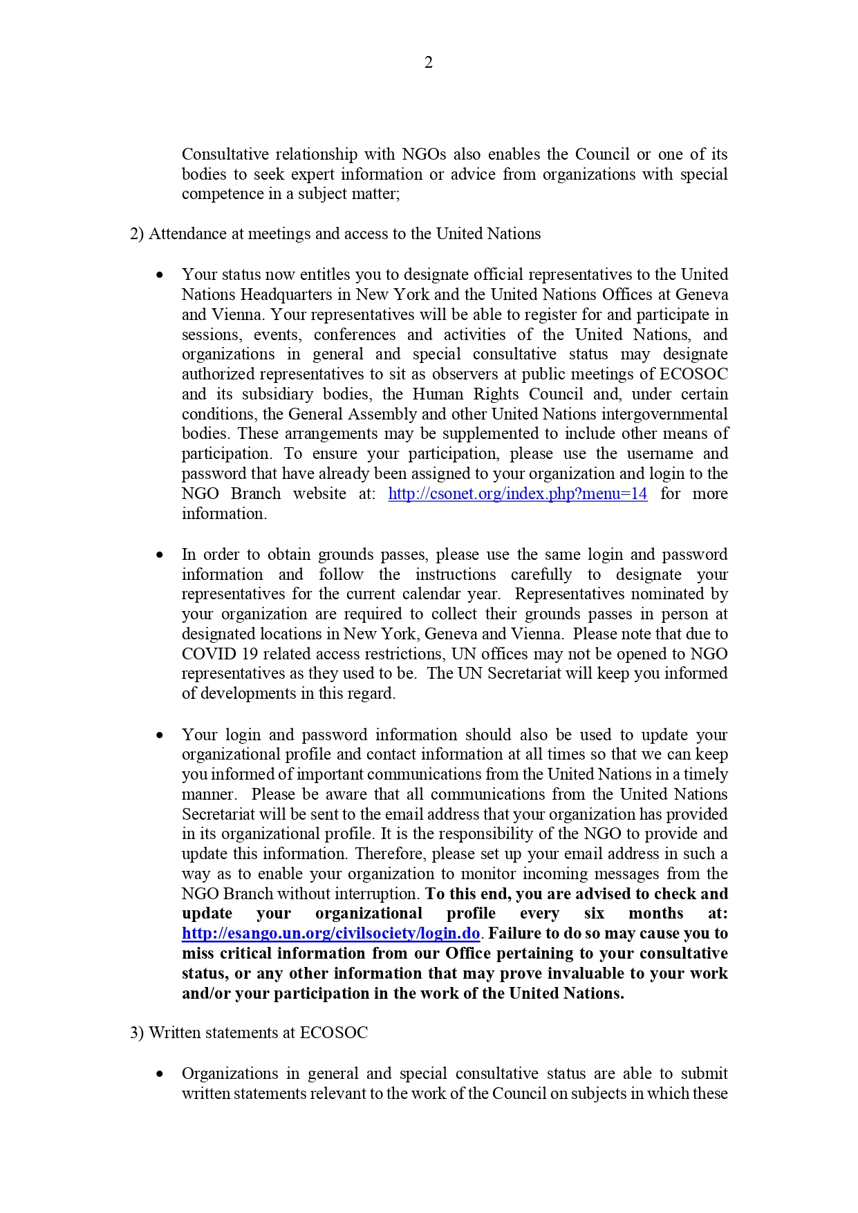 WBA ENLISTED AS SPECIAL CONSULTATIVE, STATUS BY. UNITED NATIONS- NGO BRANCH. PAGE -02